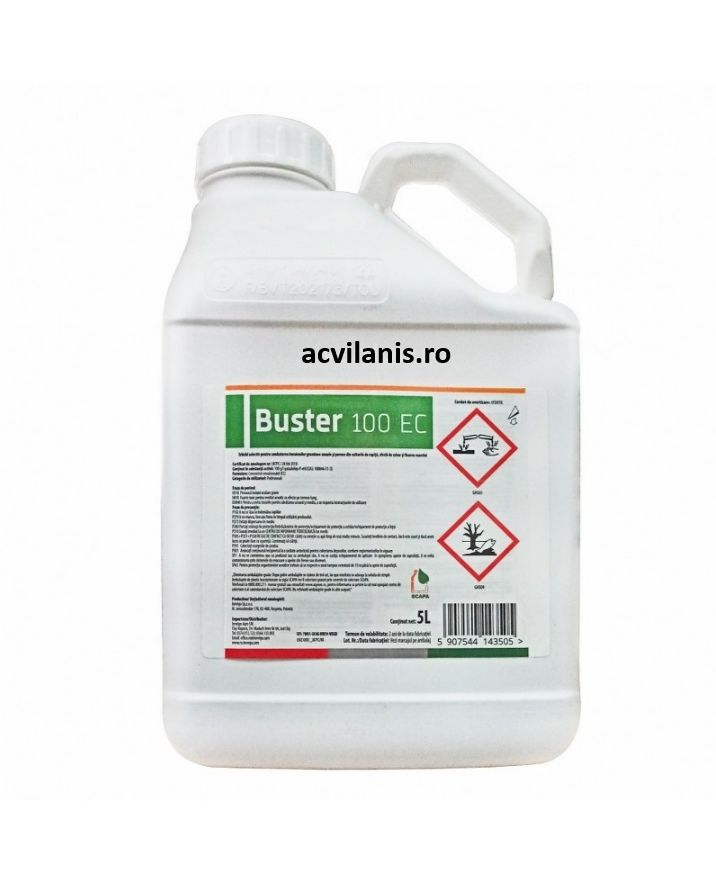 Buster 100 EC este un erbicid selectiv cu **acţiune sistemică**, absorbit foarte rapid (în câteva ore) de frunze și translocat în plantă (xilem și floem). Se acumulează în mugurii subterani, **distrugând țesuturile meristematice** ale buruienilor monocotiledonate.