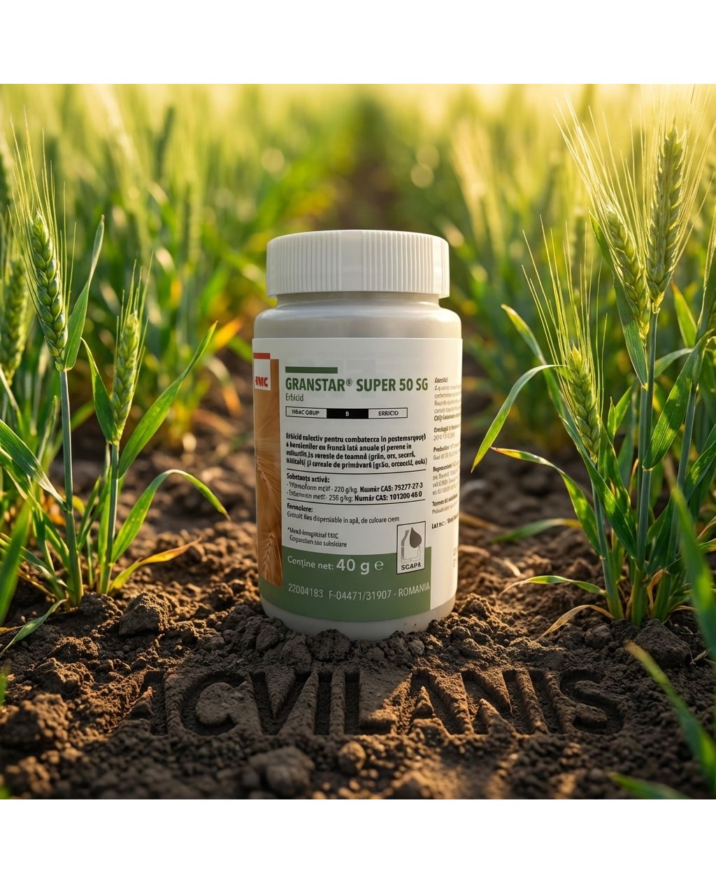 - Granstar Super poate fi folosit la temperaturi peste 5 °C Celsius. Sub forma de granule solubile imbunatateste dispersia substantei active in solutia de stropit, reduce reziduurile de pe peretii rezervorului, numarul de spalari, cantitatea de apa necesara spalarii asigurand astfel eficacitatea produsului.