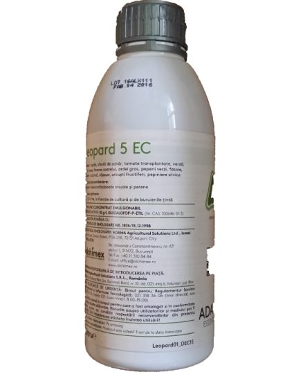 LEOPARD 5 EC conţine substanţa activă quizalofop-P-etil, ca izomer optic activ, cu acţiune sistemică de combatere a buruienilor graminee şi selectivă pentru culturile dicotiledonate. Ea este rapid absorbită de frunzele buruienilor (în circa 2-3 ore) şi se translocă în toate punctele de creştere intensă, inclusiv în rădăcini şi rizomi. Aici, prin inhibarea unor lipide din celulele meristematice, provoacă moartea buruienilor. Astfel, la câteva zile de la aplicare, buruienile tratate îşi încetează creşterea, frunzele tinere căpătând o nuanţă gălbuie. La circa 2 săptămâni după aplicare întreaga plantă se usucă. Acţiunea erbicidă a produsului LEOPARD 5 EC este cu atât mai rapidă cu cât buruienile sunt într-o fază mai tânără iar condiţiile de vegetaţie sunt optime pentru creştere (umiditate suficientă, căldură, lumină).