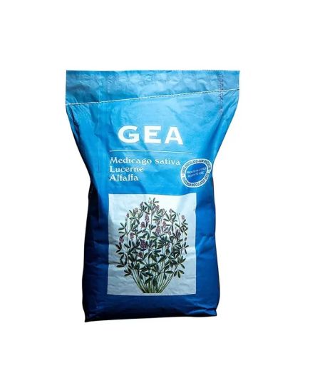 Lucerna GEA+ reprezintă o gamă largă de tip mediteranian, care are un bun raport frunză/tulpină. Produce furaje de înaltă calitate, cu un conținut mare de proteine. Are un sistem de rădăcini foarte bine dezvoltate cu o bună rezistență la secetă și la frig care îi asigura un start rapid al creșterii după perioada de iarnă, de aceea se adaptează în diferite regiuni de cultivare și poate fi semănat in toată țara. Perioada scurtă de regenerare a plantelor la soiul Gea determina un număr mare de cosiri anuale. Acest soi este indicat atât pentru cosit cât și pentru deshidratare. Caracteristice morfo-fiziologice: dimensiune mare, conținut de proteine mare, timp de înflorire mediu, regenerare: 25-28 zile, longevitate mare. Prezinta o toleranta mare la inghet si seceta precum si o rezistenta crescuta la boli.