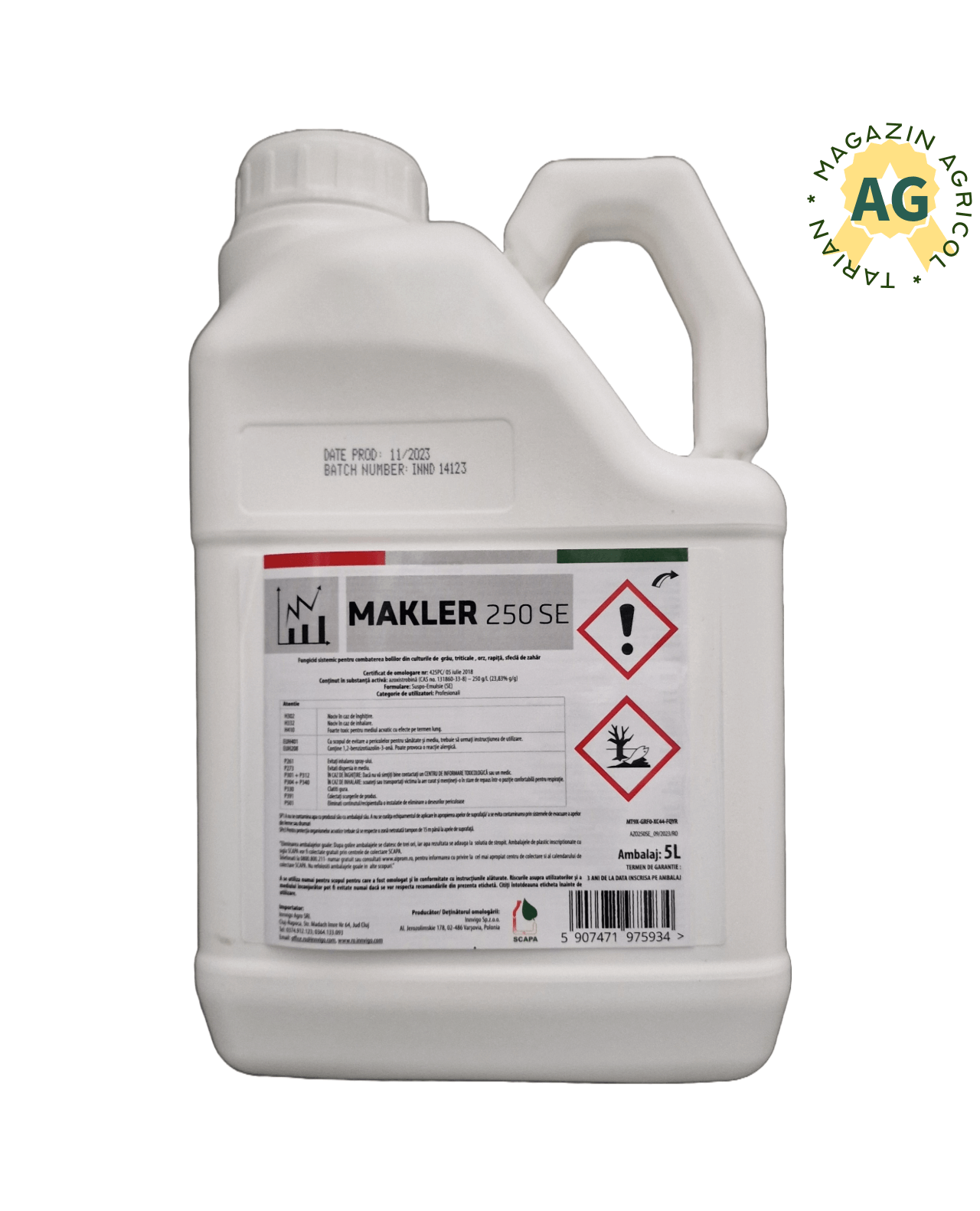 Makler 250 SE, fungicid sub formă de suspo-emulsie cu acțiune penetrantă și sistemică, utilizat în principal pentru tratamentul preventiv al bolilor cauzate de ciupercile fitopatogene.