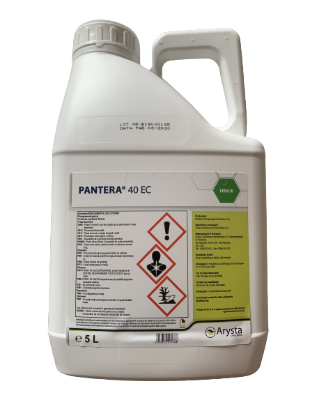 Pantera 40 EC este un erbicid sistemic postemergent pentru combaterea buruienilor monocotiledonate anuale si perene, precum si a samulastrei cerealelor, in culturile de rapita, floarea-soarelui, sfecla de zahar, cartof, soia, legume si lucerna.