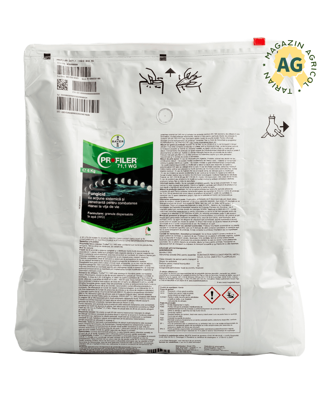 Profiler 71,1 WG reprezintă o combinaţie optimă a două substanţe active foarte eficiente în prevenirea şi combaterea manei la viţa de vie. Fluopicolid face parte dintr-o clasă chimică nouă, acilpicolide, având un mod de acţiune diferit faţă de substanţele active utilizate în prezent în controlul manei.