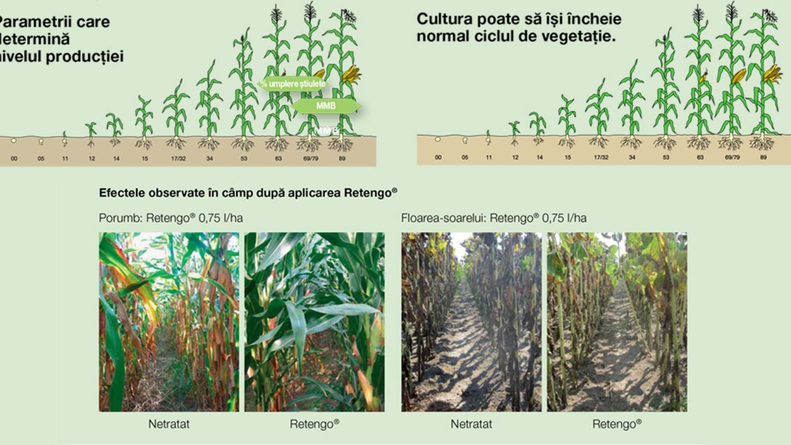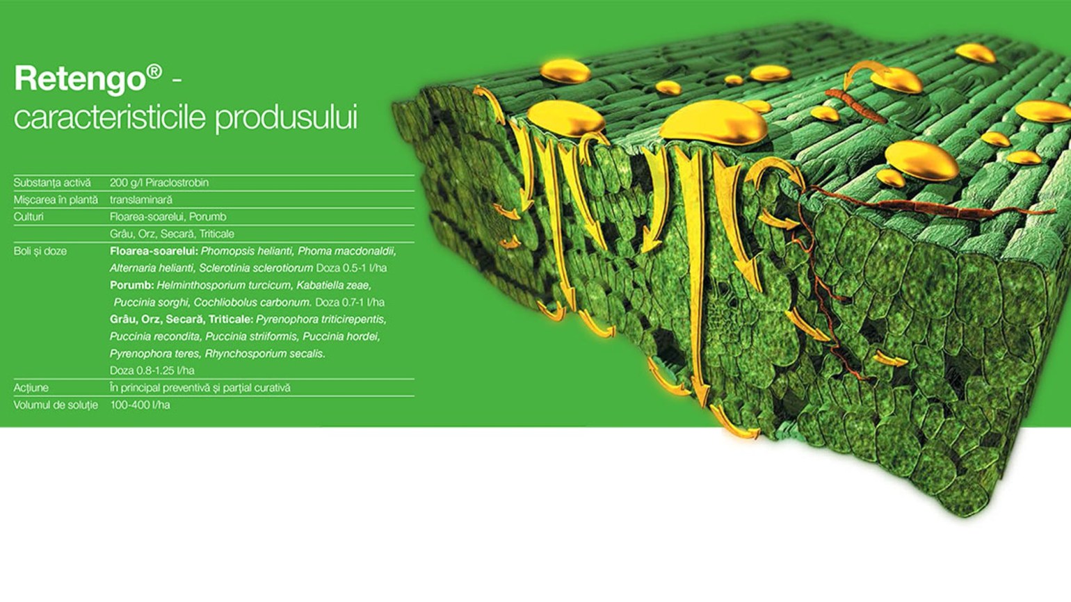 Presiunea de infecție a bolilor poate fi foarte ridicată pe parcursul vegetației. Rezistența tulpinilor și a plantei se pot deteriora pe parcursul unui sezon lung, în condiții de creștere dificile. Seceta, frigul, grindina și alți factori de stres pot afecta potențialul de producție al hibrizilor. Din aceste motive, fermierii au nevoie de instrumente suplimentare pentru a echilibra factorii care concură la reducerea cantității și calității producției. Fungicidul Retengo® este un instrument inovator oferit de compania BASF, pentru a sprijini fermierii în obținerea unor producții ridicate cantitativ și calitativ.