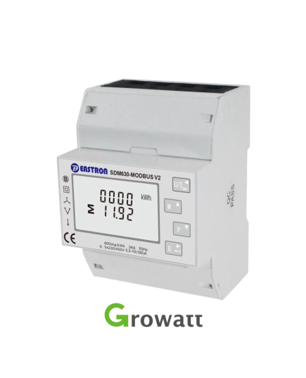 Este compatibil cu invertoarele Growatt On-Grid, Off-Grid si Hibrid. Contorul comunica prin RS485 si conexiune directa la invertor, este usor de instalat si rentabil.